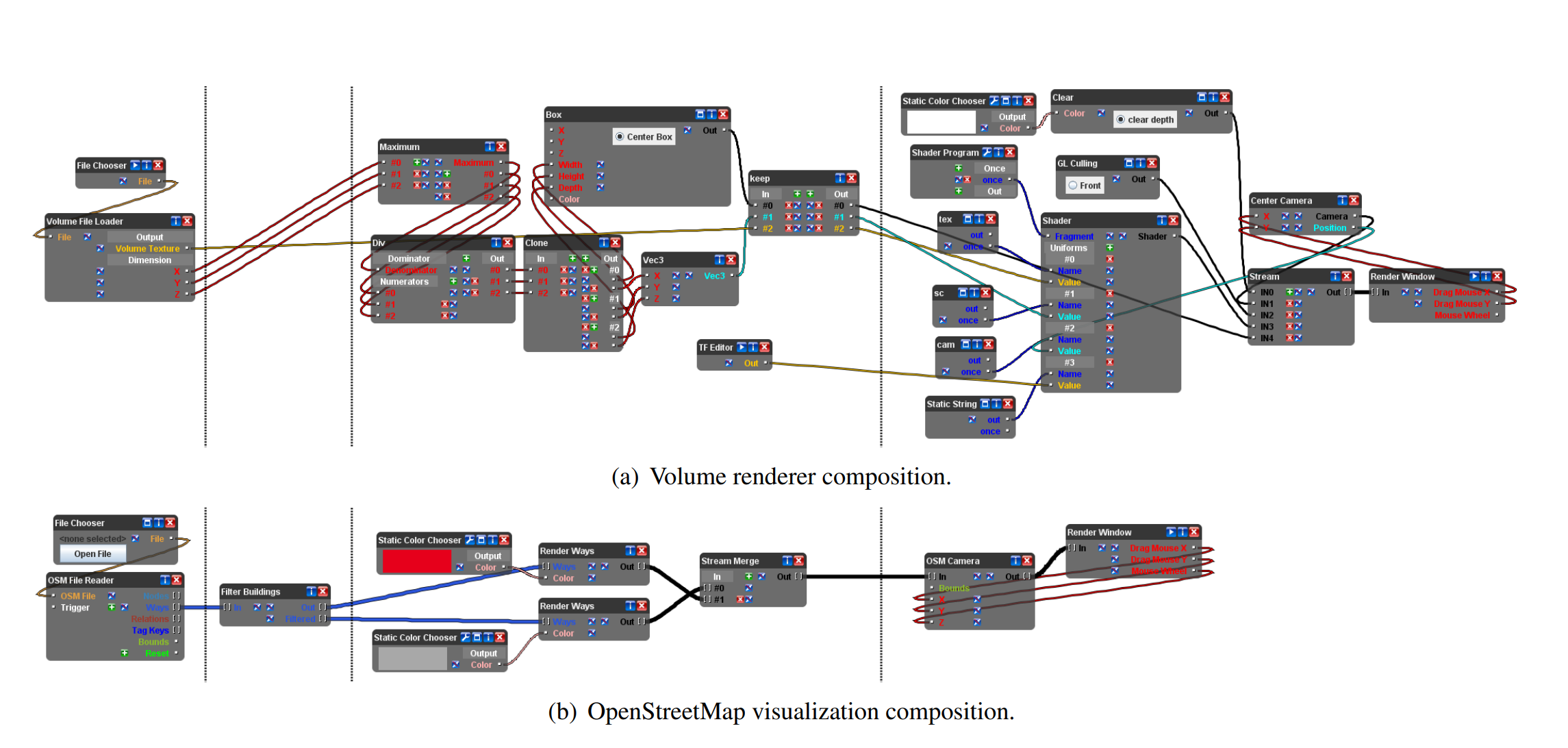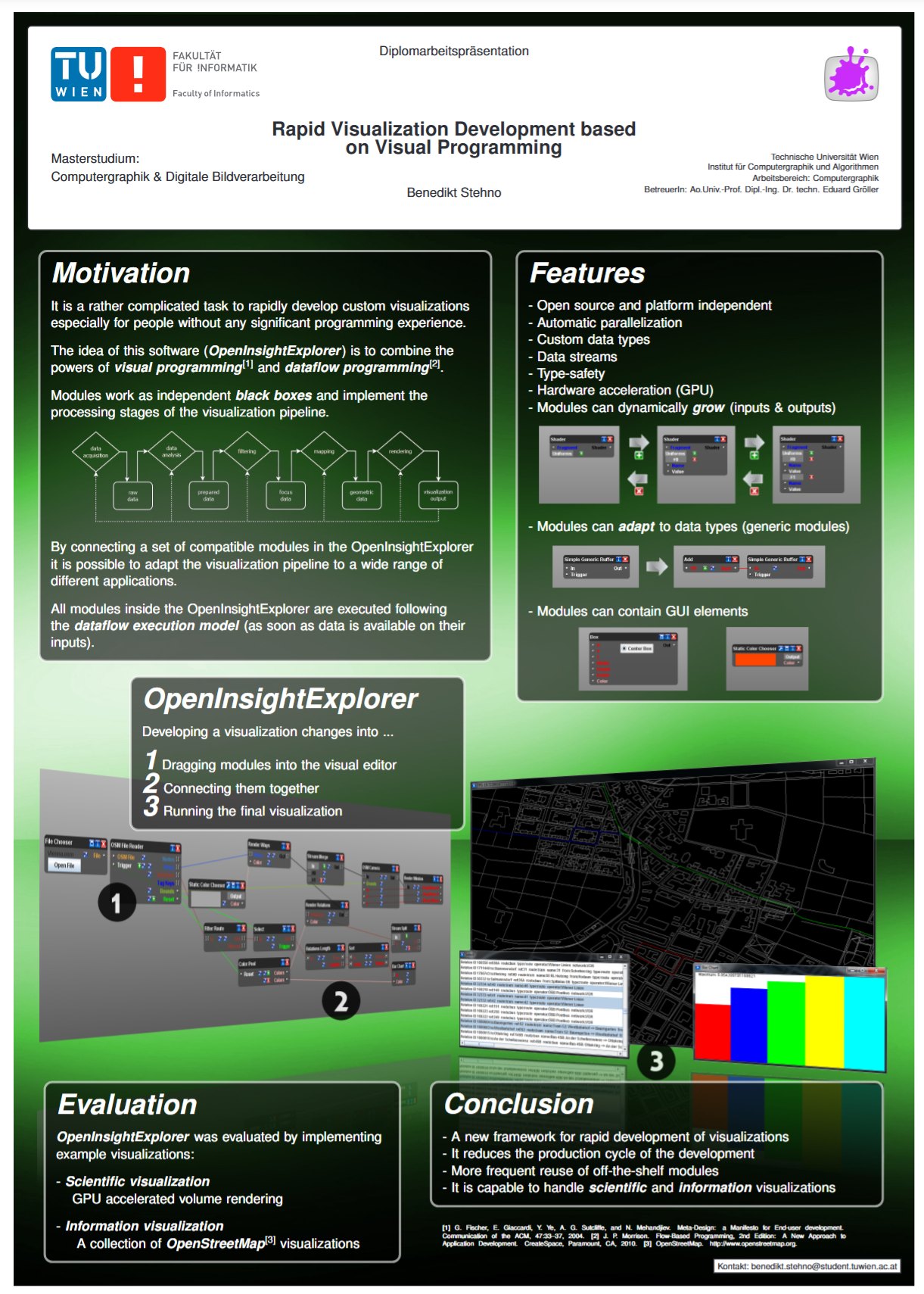 Often, customers of such visualization packages cannot extend them, to fit their needs, especially if the software is closed source. But even using open source software does not solve this problem efficiently, since to extend the software, costumers need to have programming skills and are often forced to reimplement algorithms or visualizations which already exist, making rapid development impossible.